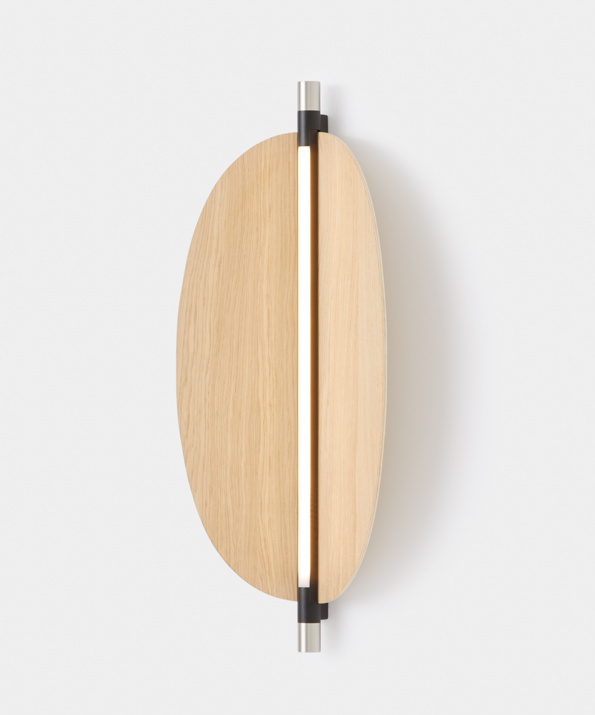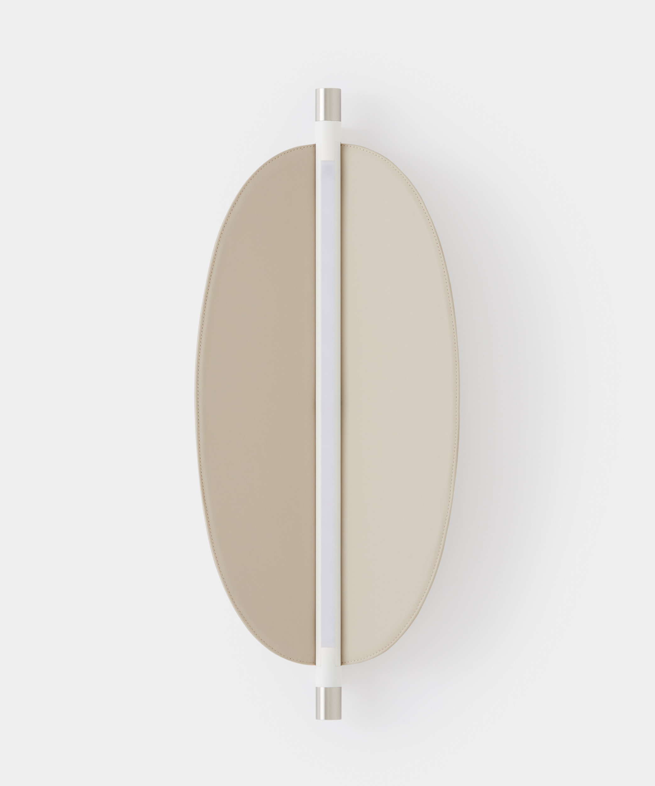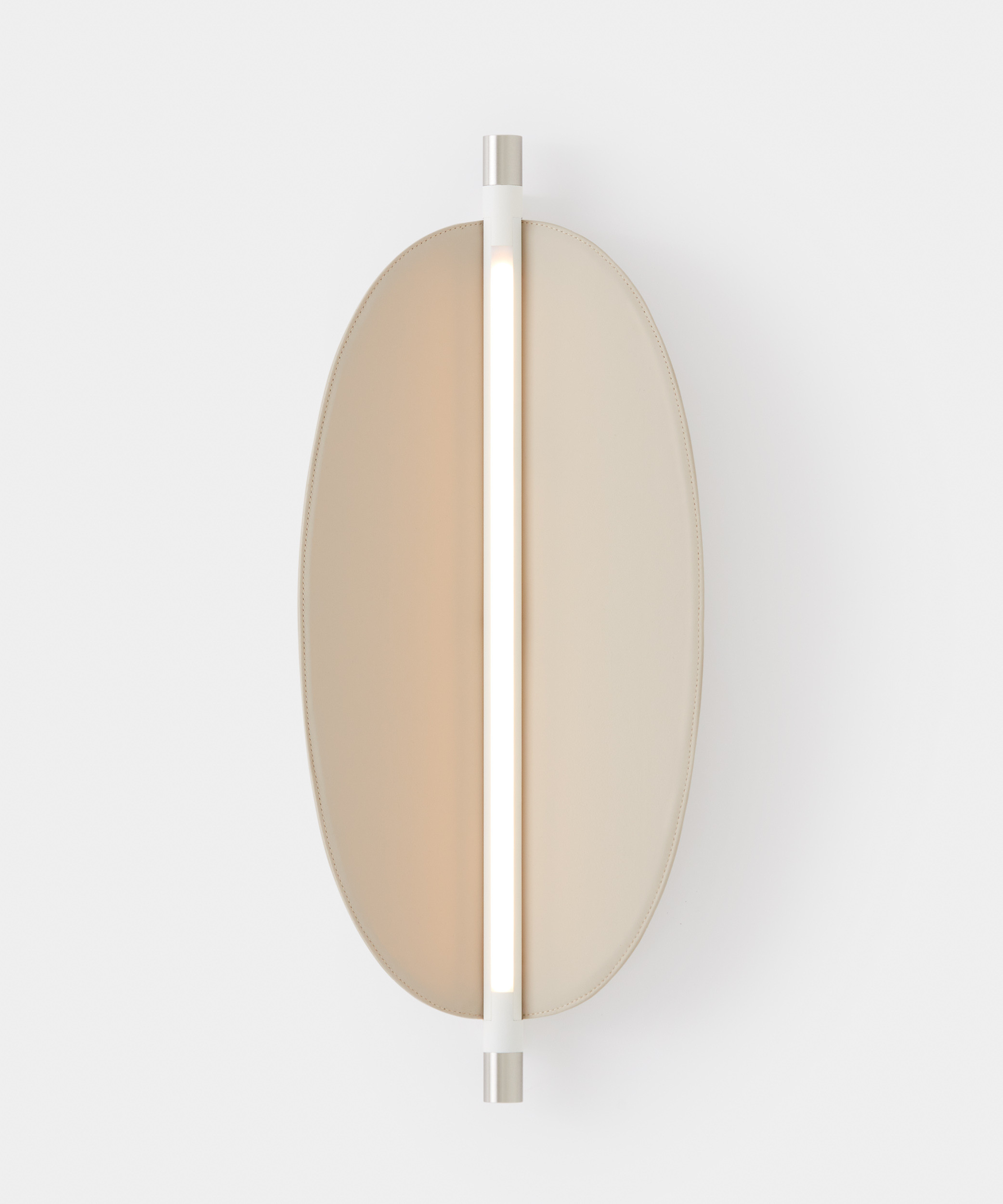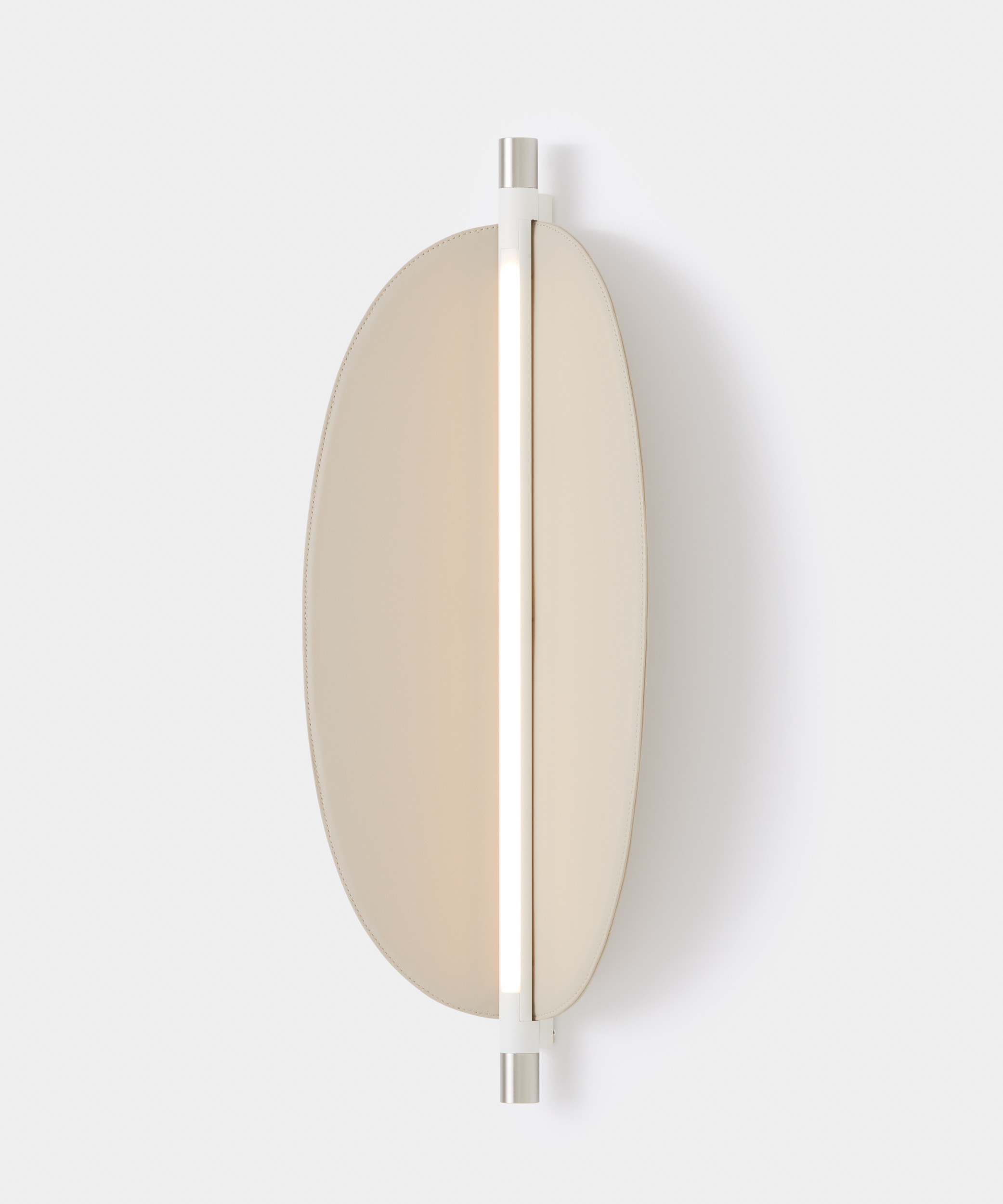 Designed by Federica Biasi, the Thula appliques and suspension lamps are based on a simple and architectural central element with an illuminating function to which an organic component in wood or quilted leather is added in a skillful game of addition and subtraction. Consists of a linear dimmable LED; in the simple wall version it can be oriented, thus giving direct or indirect light.