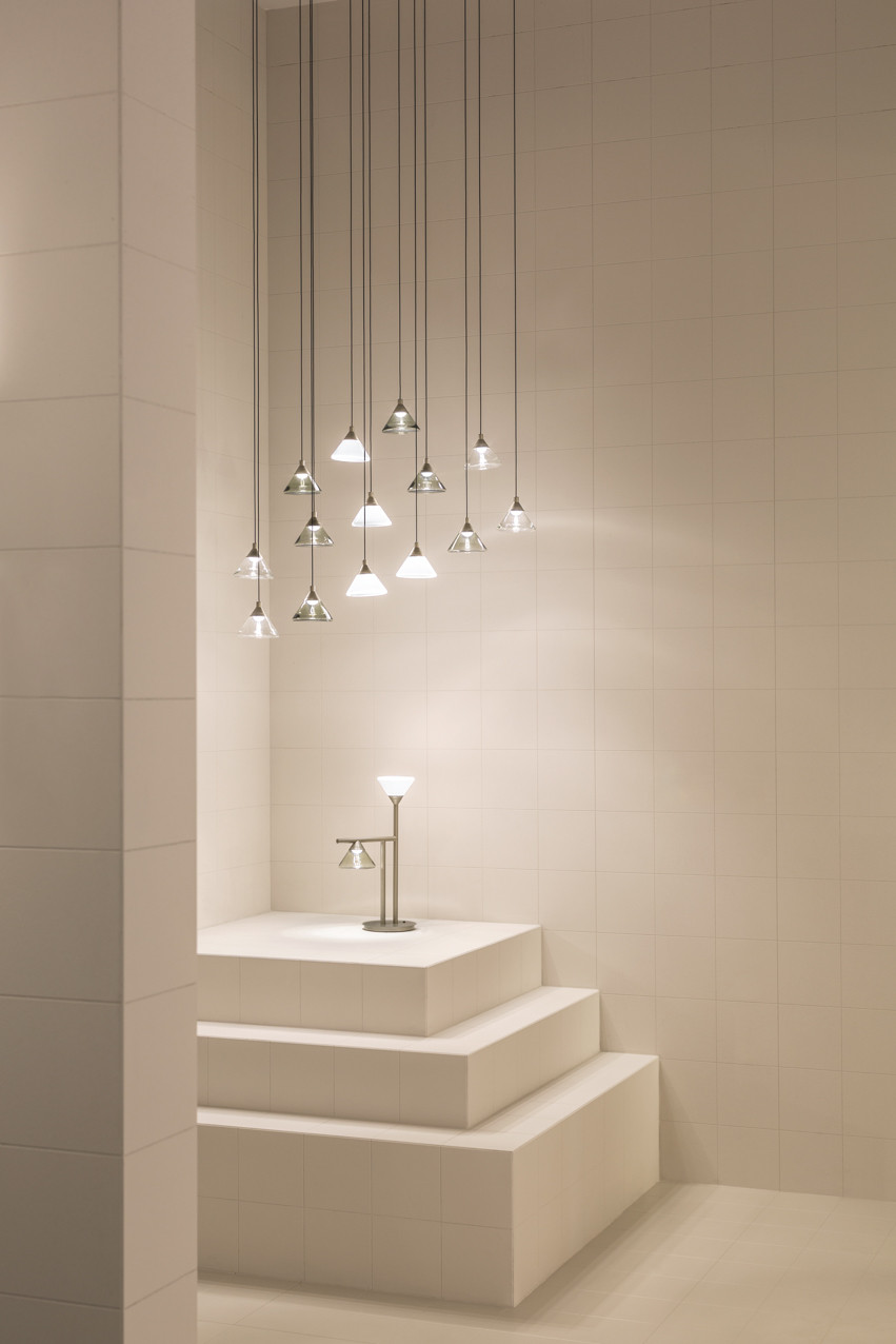 Connotata da un’evidente ispirazione naturalistica, la famiglia di lampade Linfa progettata da Federico Peri si dispiega su bracci tanto sinuosi ed eleganti da evocare le nervature che percorrono le foglie, con luminosi punti luce che brillano come gocce di rugiada. In questa famiglia, composta da lampade a sospensione, da terra, da tavolo e appliques, le raffinate diramazioni sono disponibili nelle finiture oro, titanio o nickel opaco, mentre le fonti luminose, realizzate in vetro di Murano, sono declinate nelle finiture fumé, trasparente o bianco latte.