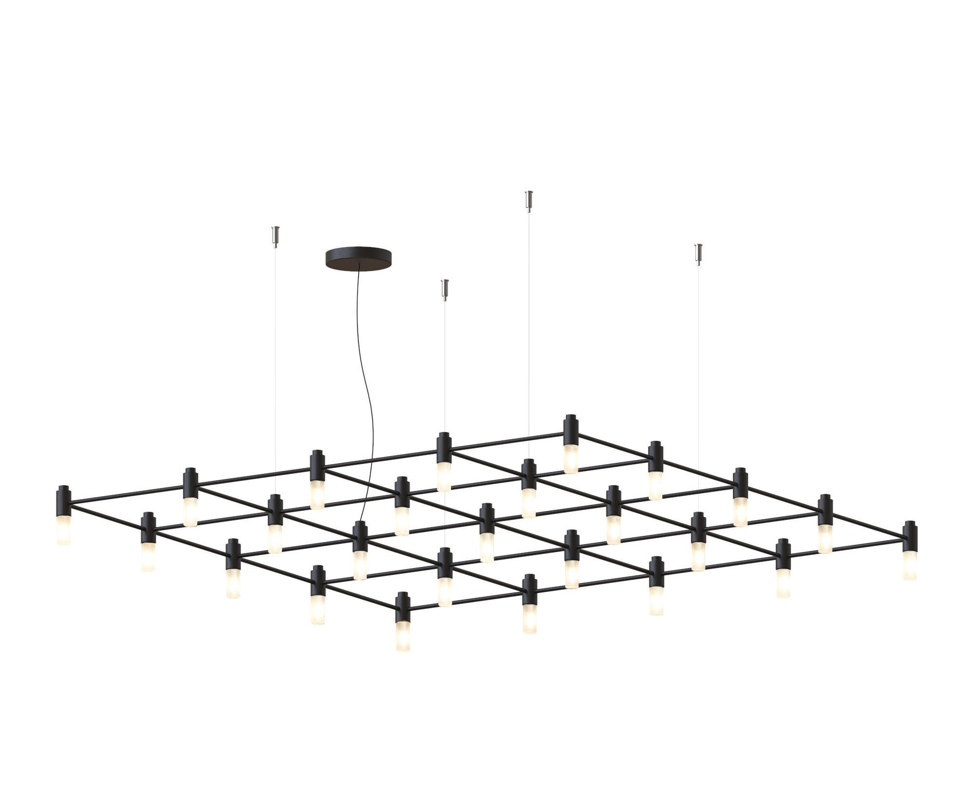 Cavo: Cavo in acciaio lunghezza 125 cm. Cavo elettrico in PVC nero lunghezza 150 cm.