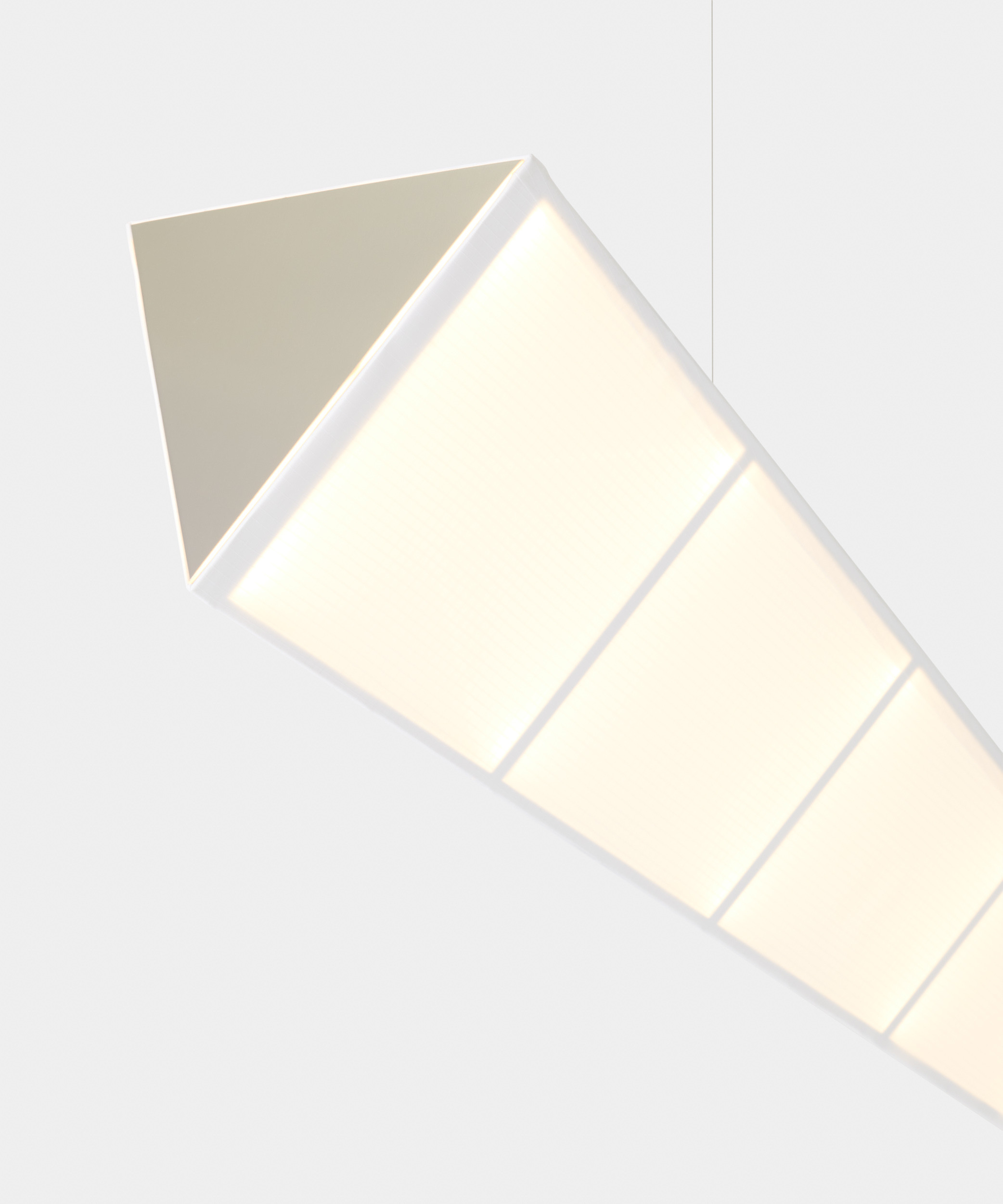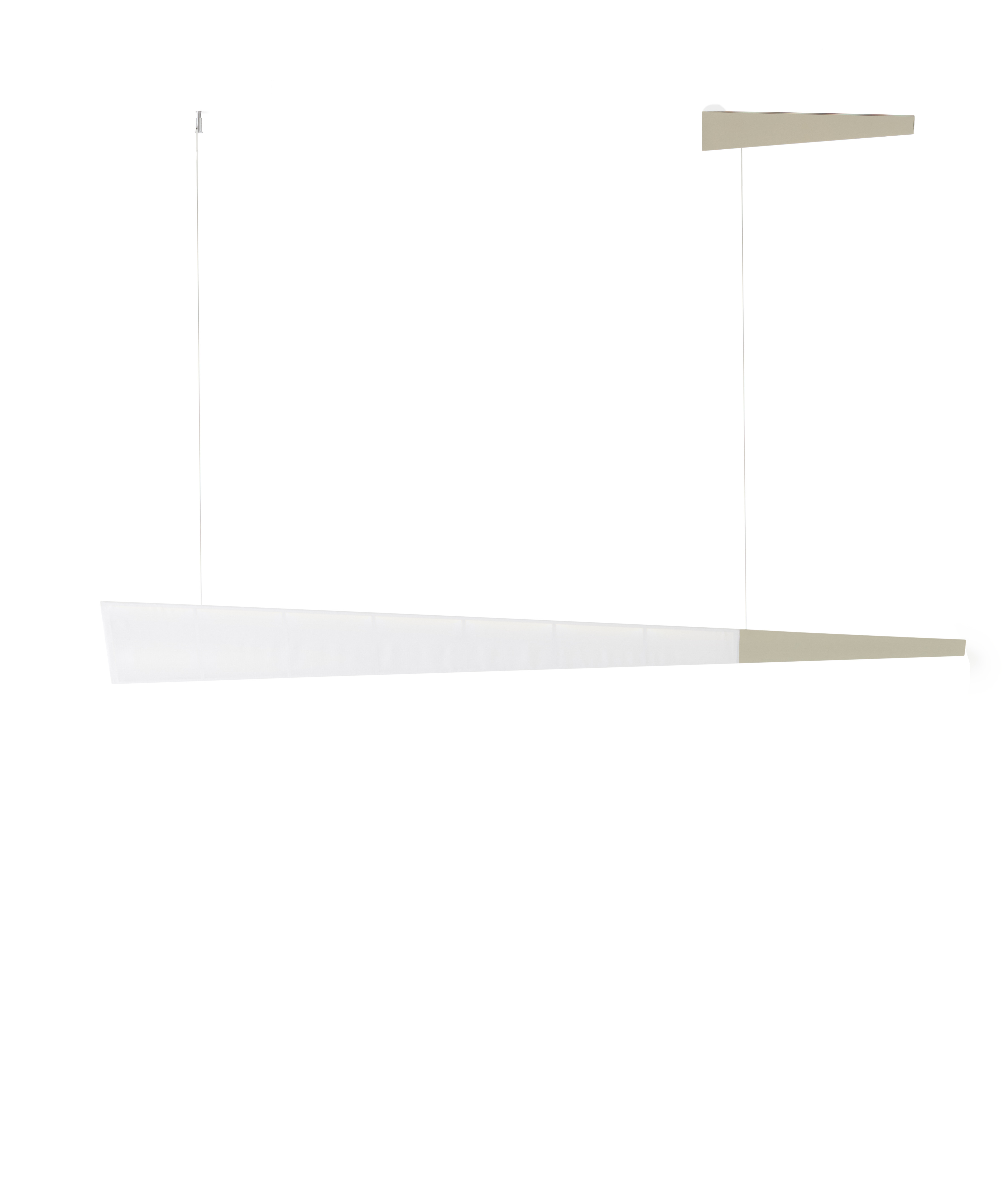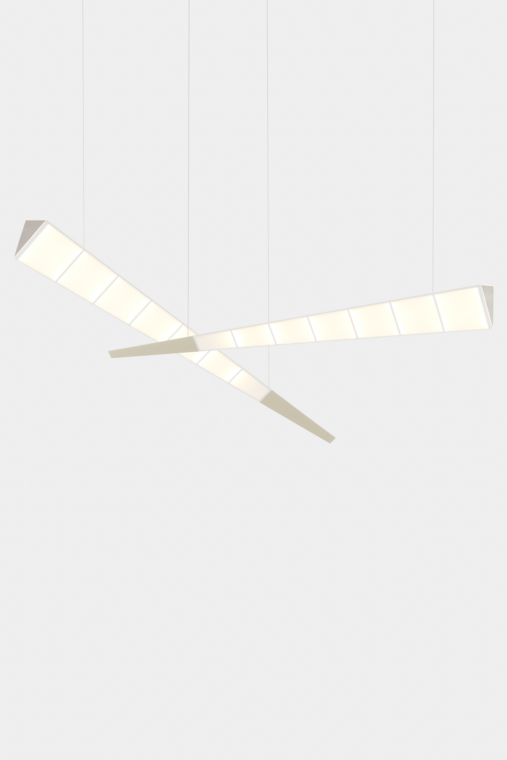 Igor appears as a luminous entity suspended in space, a simple yet sophisticated geometry whose proportions define its essential beauty. It can stand alone or form free compositions that evoke successive moments of a silent motion within the surrounding volume.