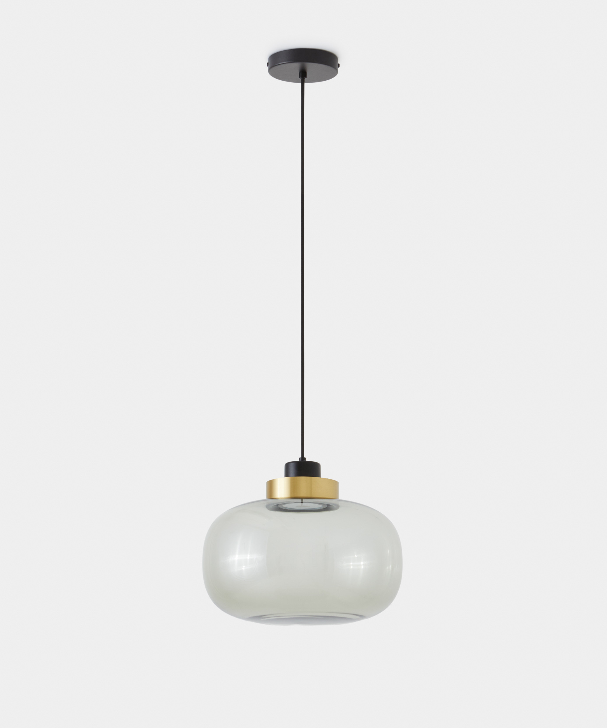 Collection of lamps inspired by the classical shapes of Murano diffusor usually used as decoration anywhere in a house; elegant spherical cruet apparently fragile yet very robust and functional. These lamps can have the connection in brushed brass or painted, while the diffusor is made by blown glass opal white glass or fumè with harmonious and decorative shapes. Versatile, elegant and robust, these lamps can be positioned on the floor, on the table, ceiling, wall and hanging, both in one-unit version or in the chandelier one with four or six elements. These lamps give class and sophistication to any location, whether it be sober or lavish.