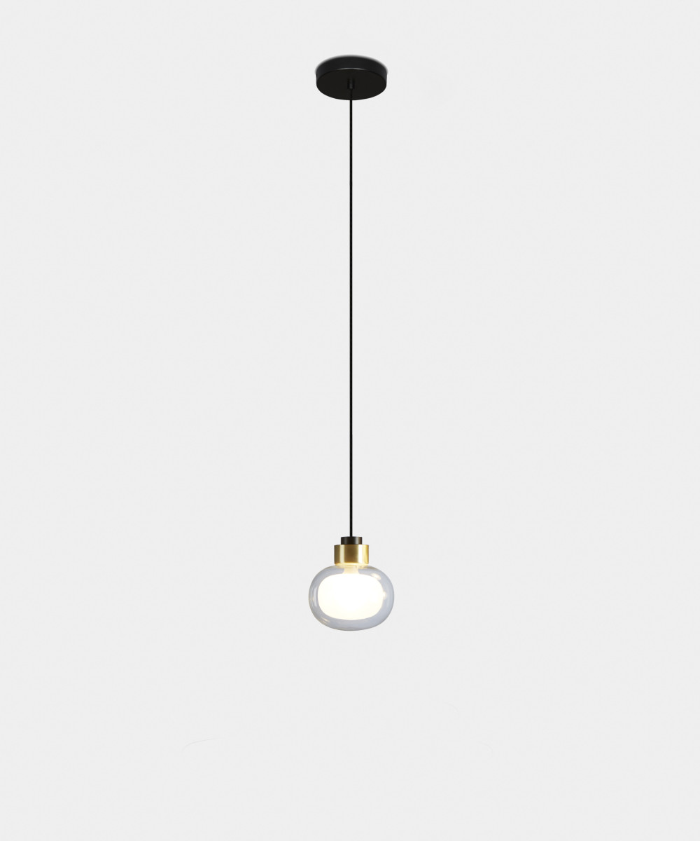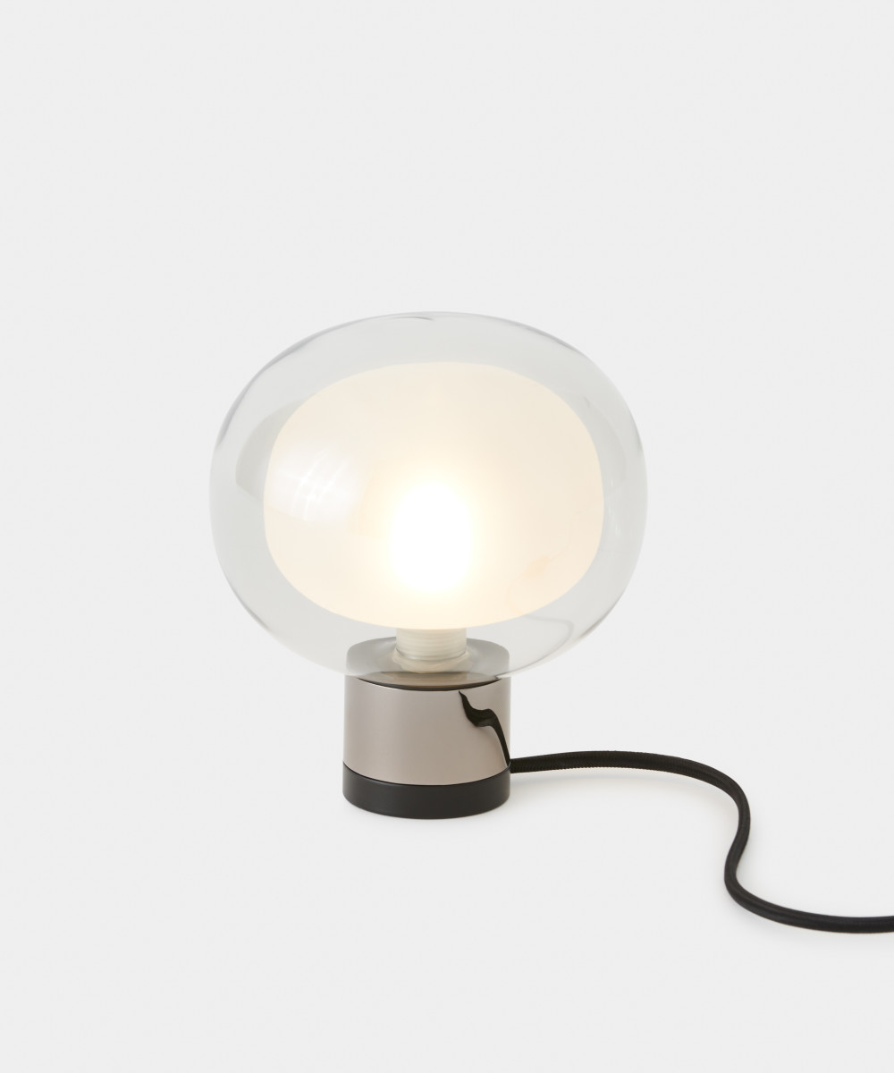 A double-sided luminous sphere in borosilicate glass defines the character of the collection, available in multiple compositions.