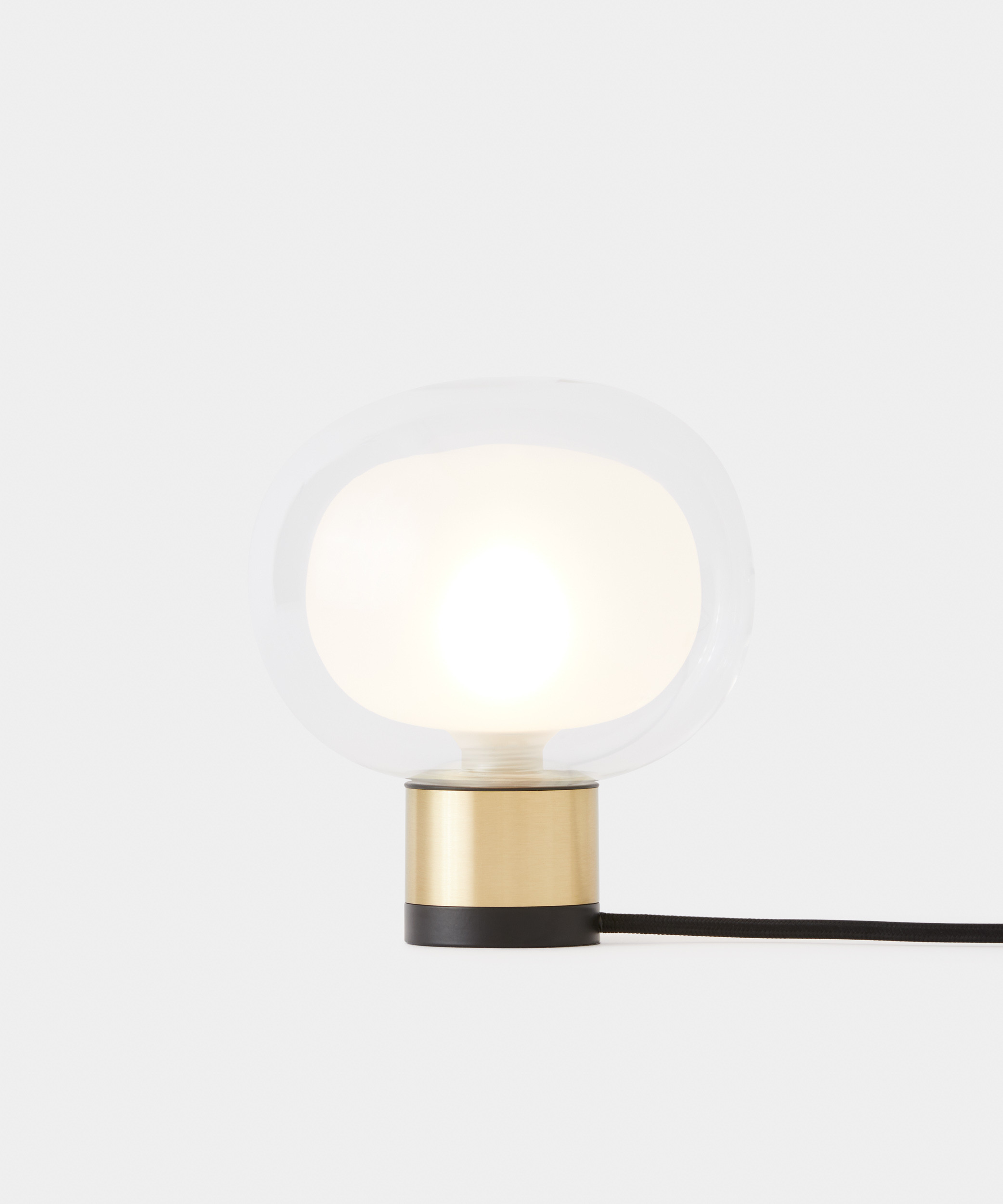 A double-sided luminous sphere in borosilicate glass defines the character of the collection, available in multiple compositions.