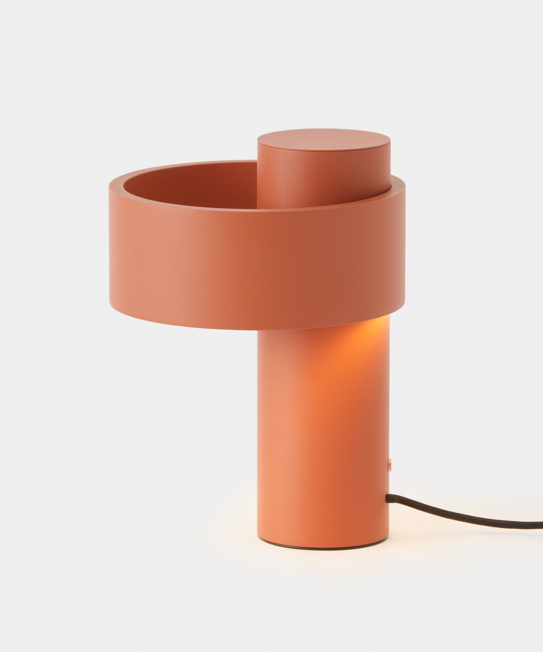 The Nastro collection of suspension, wall, floor and table lamps designed by Studiopepe sees an epoxy powder coated aluminum band structure accompanied by a cylindric weight that counterbalances its flexuosity, in a refined visual balance. The light source consists of a dimmable LED strip; the cylinders are available in epoxy powder coated metal, in wood, in brushed brass and in raw concrete.