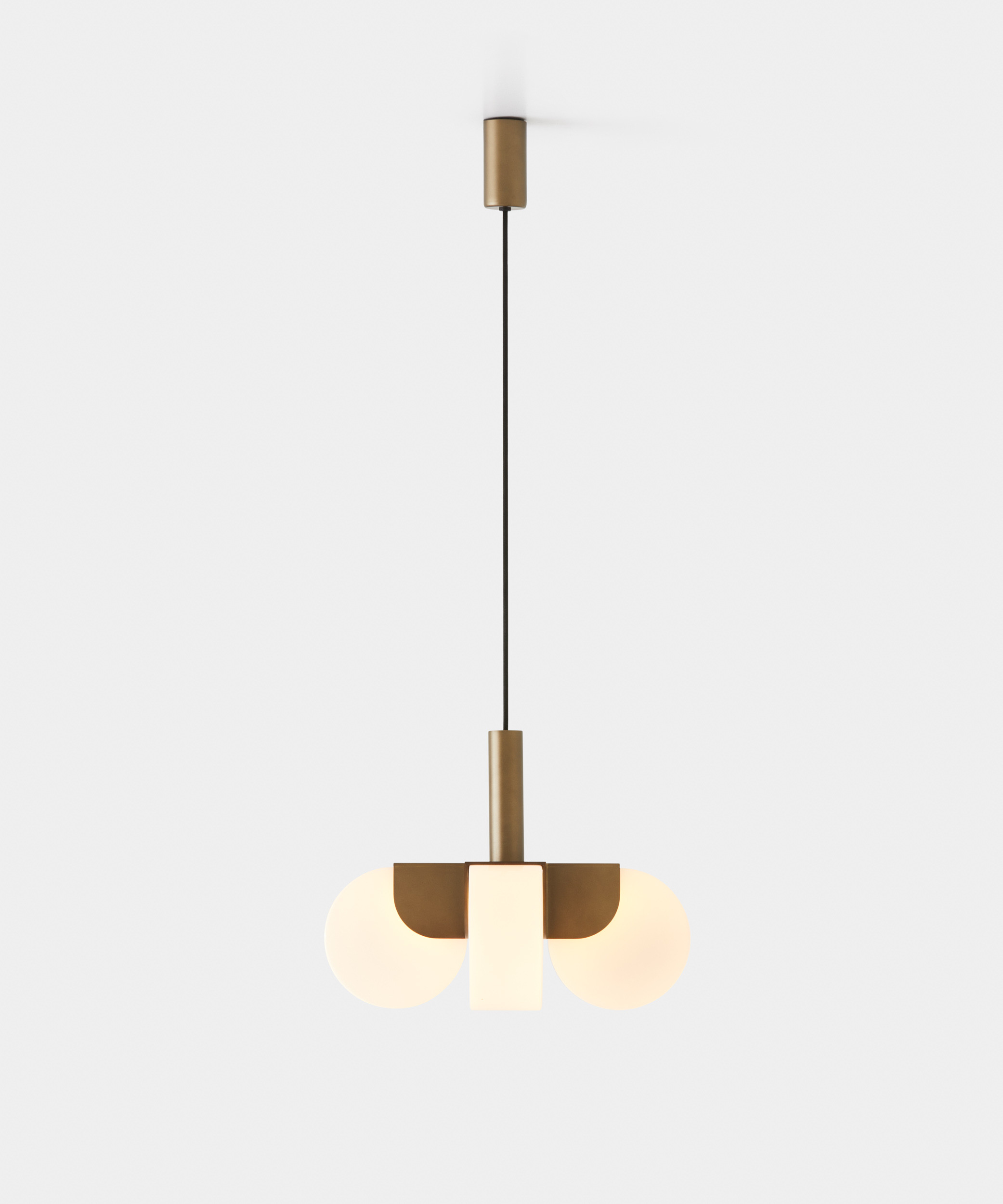 Stilla is a collection that blends metal and glass in a balance of clean, essential lines. The luminous body opens downward to embrace a glass element that, like a drop of water, appears to glide effortlessly, creating a refined interplay of materials.