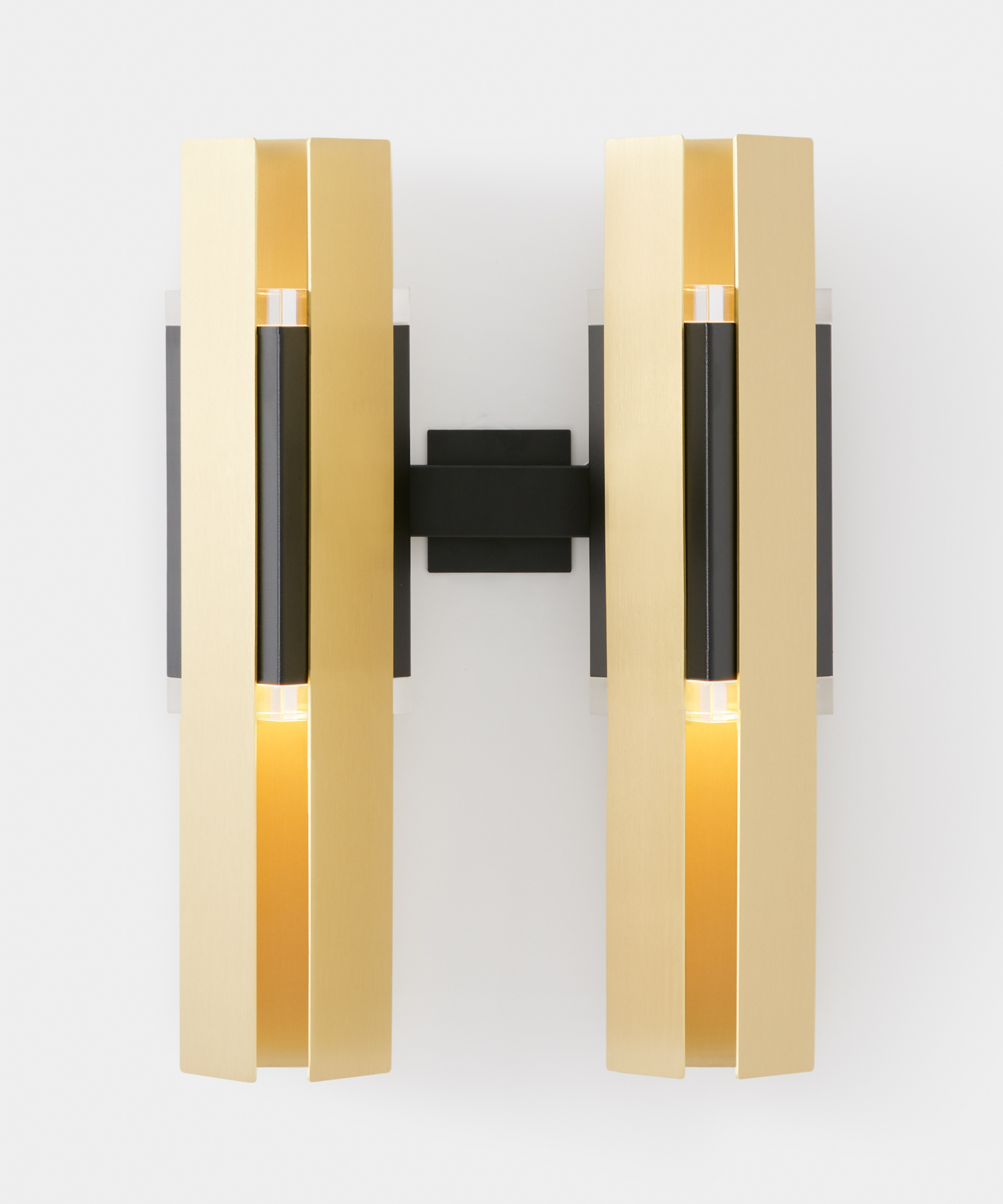 Lampada dal gusto Deco discreto, con corpo verniciato nero e due prismi in plexiglass che diffondono la luce, avvolti da tre lamine rettangolari in metallo spazzolato. Oltre alla finitura in ottone spazzolato, la collezione è ora disponibile anche nelle varianti bronzo satinato e titanio satinato, per una nuova interpretazione della sua geometria elegante. Excalibur è proposta in diverse configurazioni: sospensioni singole o a grappolo, lampadari in due dimensioni e applique singole o doppie.