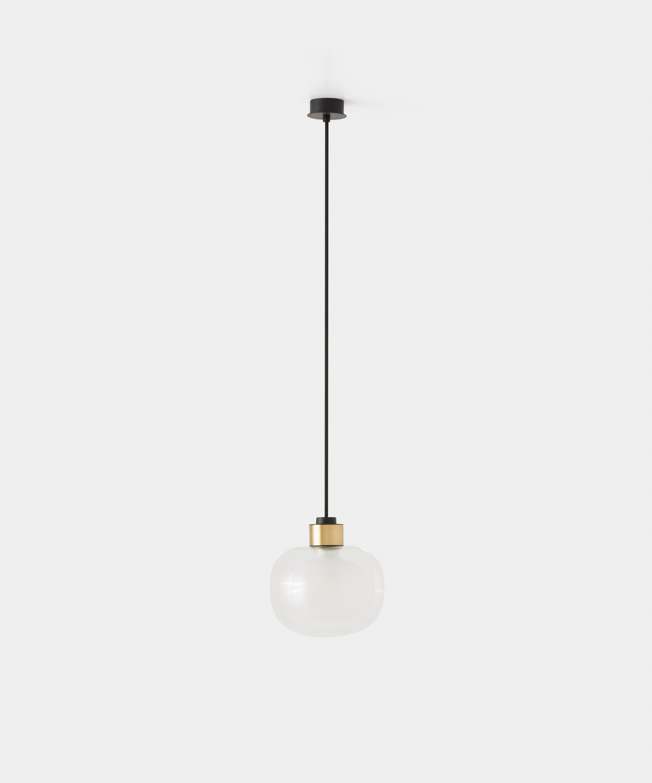 Una sfera luminosa in vetro borosilicato, visibile su entrambi i lati, caratterizza il design della collezione, proposta in molteplici composizioni.