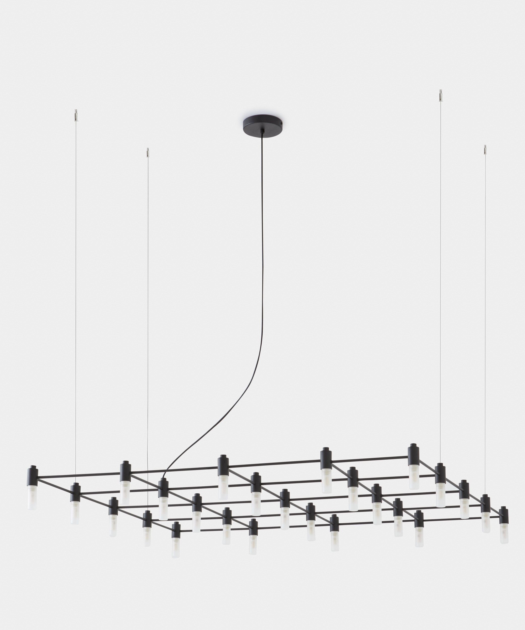 Cavo: Cavo in acciaio lunghezza 125 cm. Cavo elettrico in PVC nero lunghezza 150 cm.