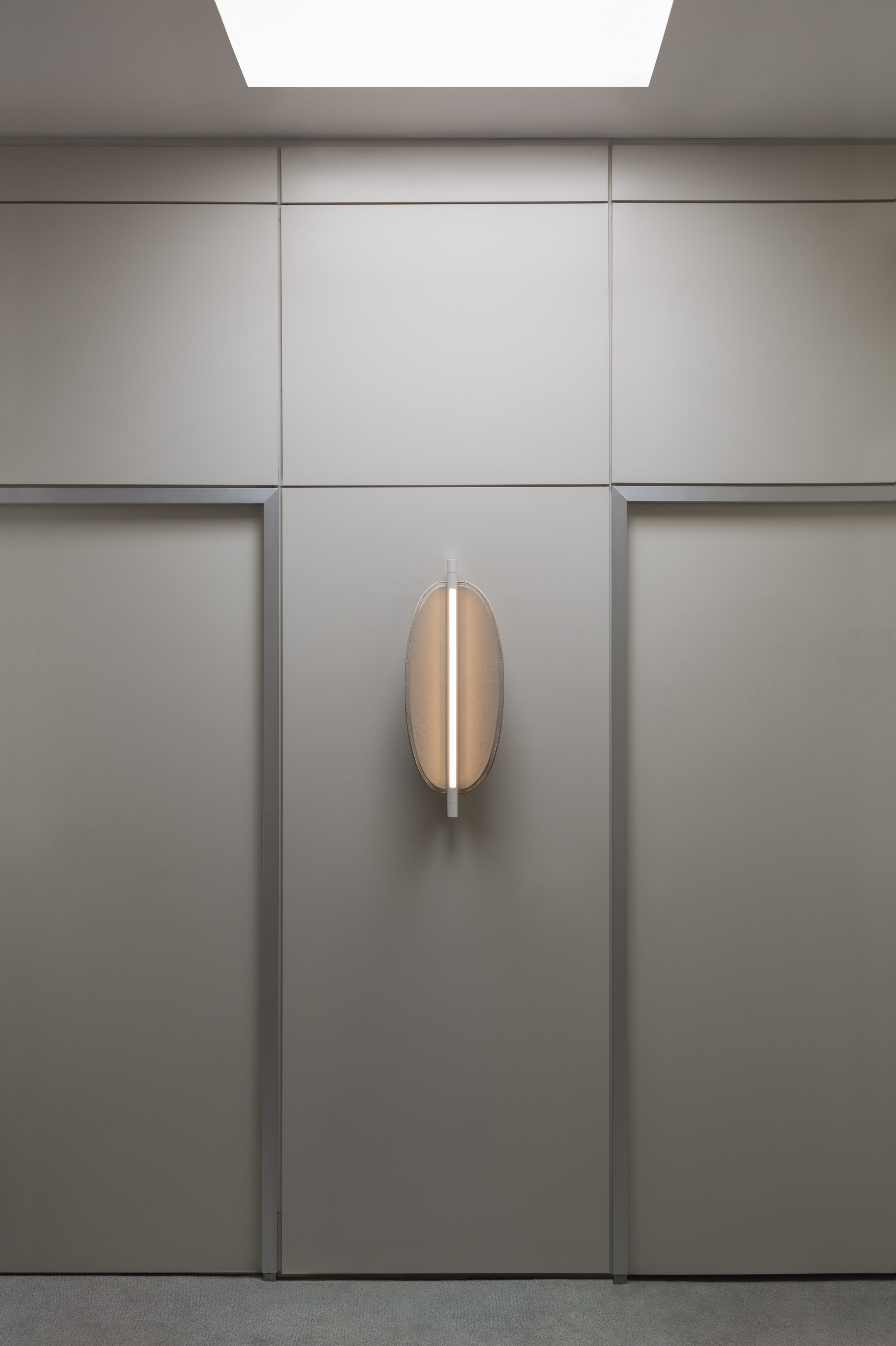 Disegnate da Federica Biasi, le appliques e le lampade a sospensione Thula sono fondate su un elemento centrale semplice e architettonico con funzione illuminante a cui si aggiunge, in un sapiente gioco di addizione e sottrazione, una componente organica in legno o in pelle trapuntata. La fonte luminosa consiste in un LED lineare dimmerabile; nella versione base a parete può essere orientata, dando quindi luce diretta o indiretta.