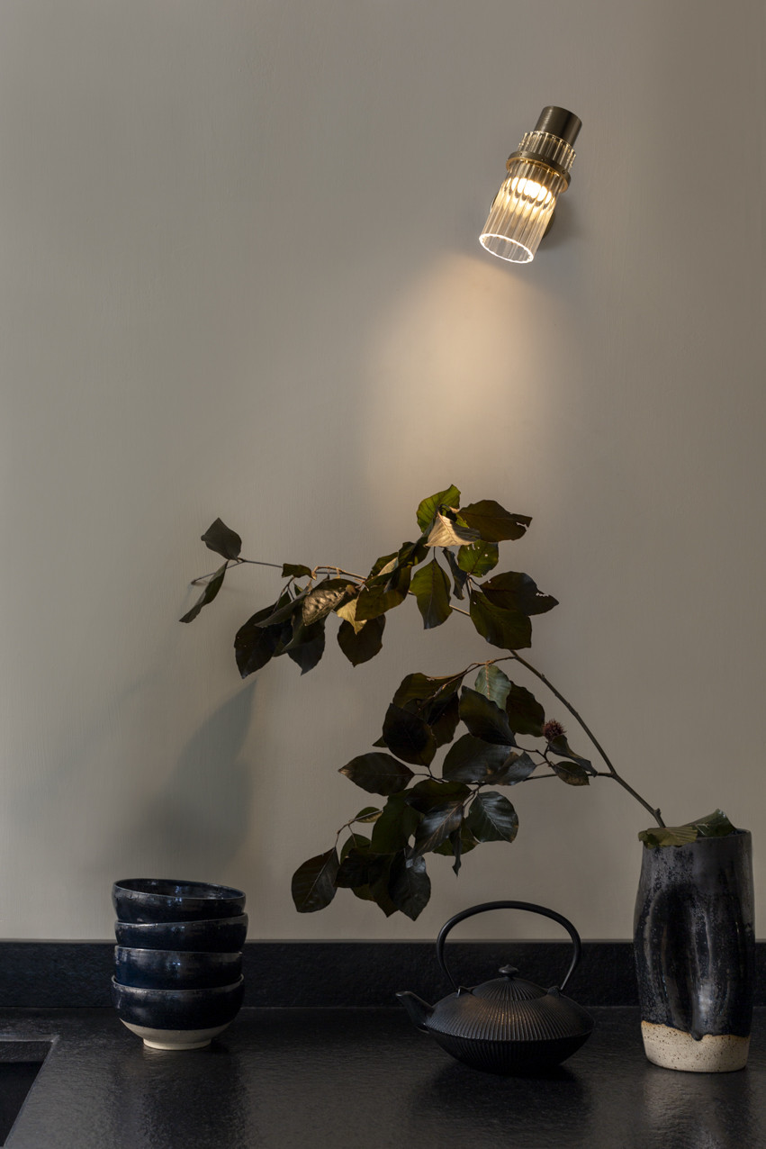 In a world of spotlights with a masculine feel, Lei emerges: a system of technical spotslights with a crystalline and elegant aesthetic, based on curved elements that evoke the grace of the feminine universe, such as sartorial pleats and the sophisticated workmanship of precious perfume bottles. Available in matte black, brass, nickel and titanium finishes with clear and frosted glass or smoked, bottle green and red available on request. Lei is destined to capture every eye that passes, with its brilliant aesthetic presence.