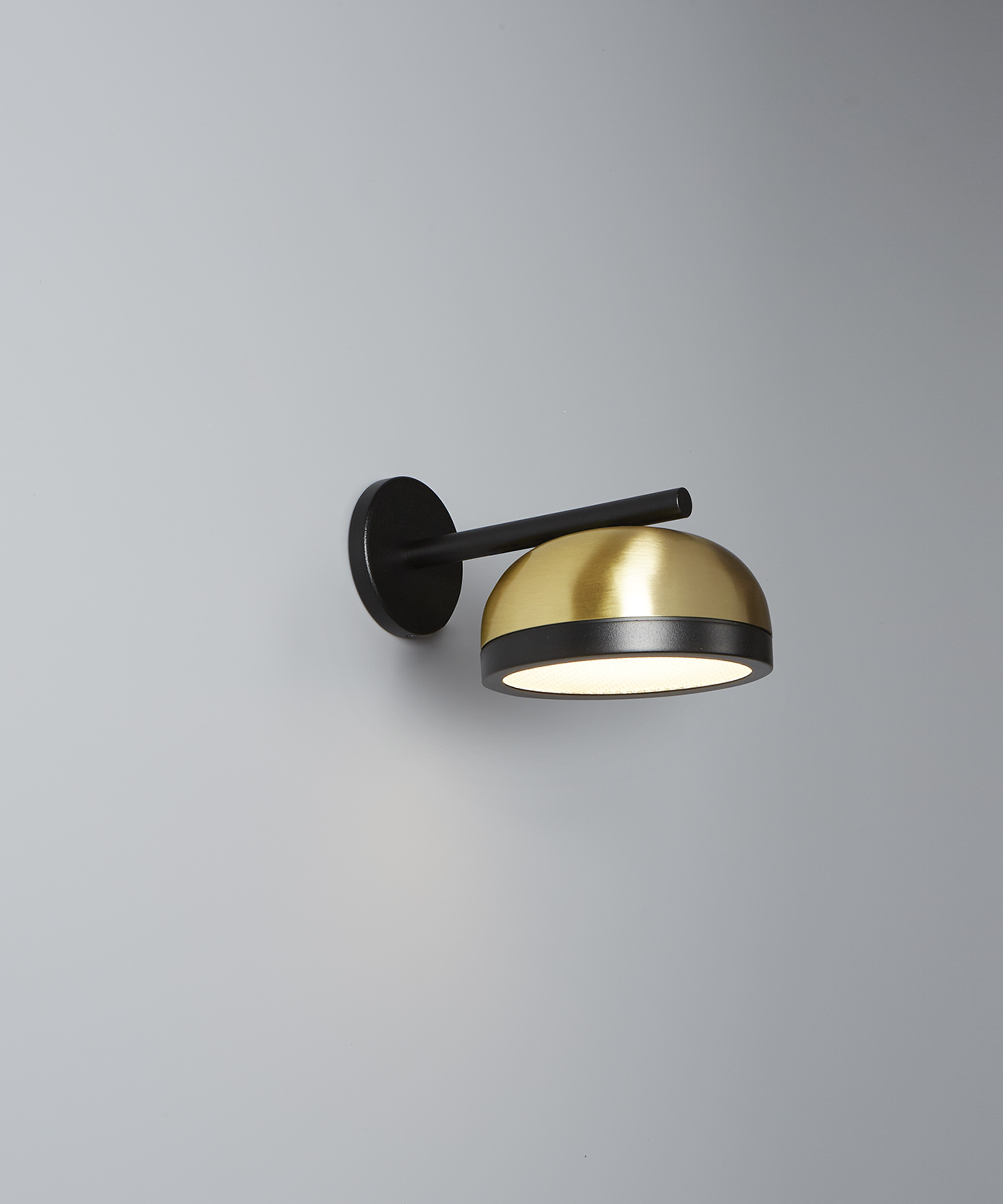Collection of contemporary hanging, wall, floor, table, side and ceiling lamps with a painted dome and ring either painted or finished with brushed brass, copper or pewter. The bright diamond screen is made of plexiglass to better spread light out. The collection presents lamps available in three sizes for single-unit or dynamic compositions. These lamps are very versatile and fit any kind of setting, thanks to their simple shape yet rich materials.