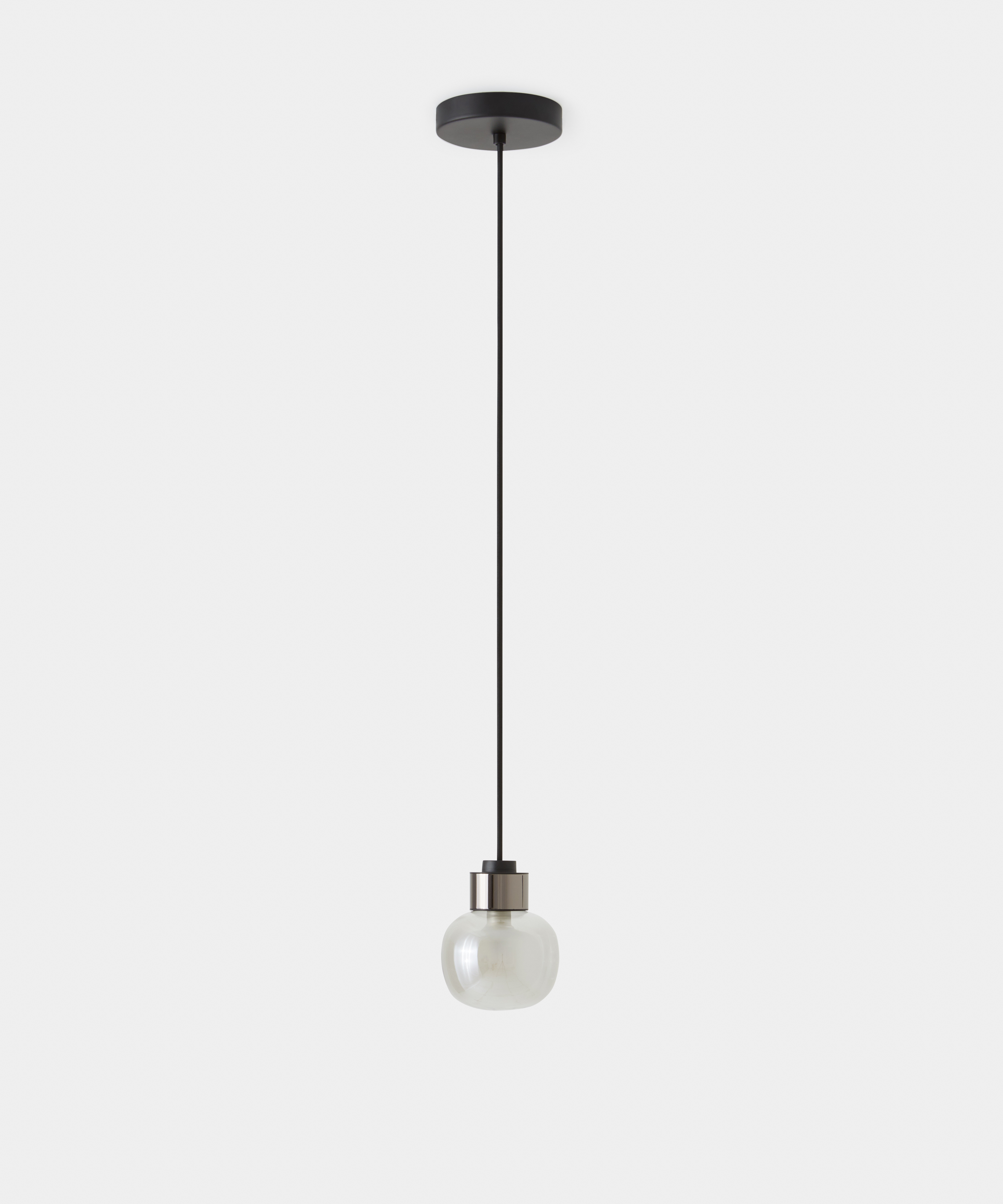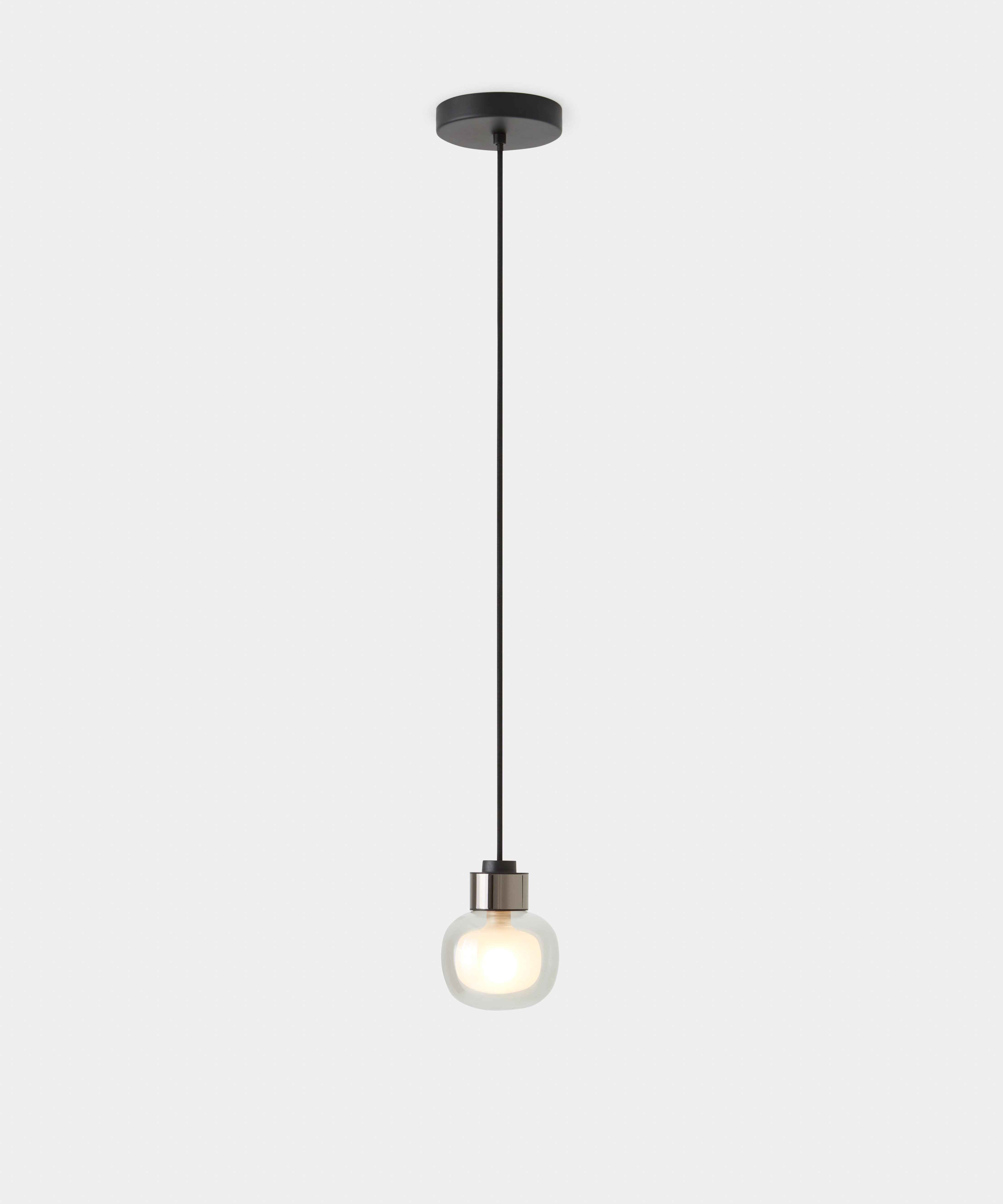 A double-sided luminous sphere in borosilicate glass defines the character of the collection, available in multiple compositions.