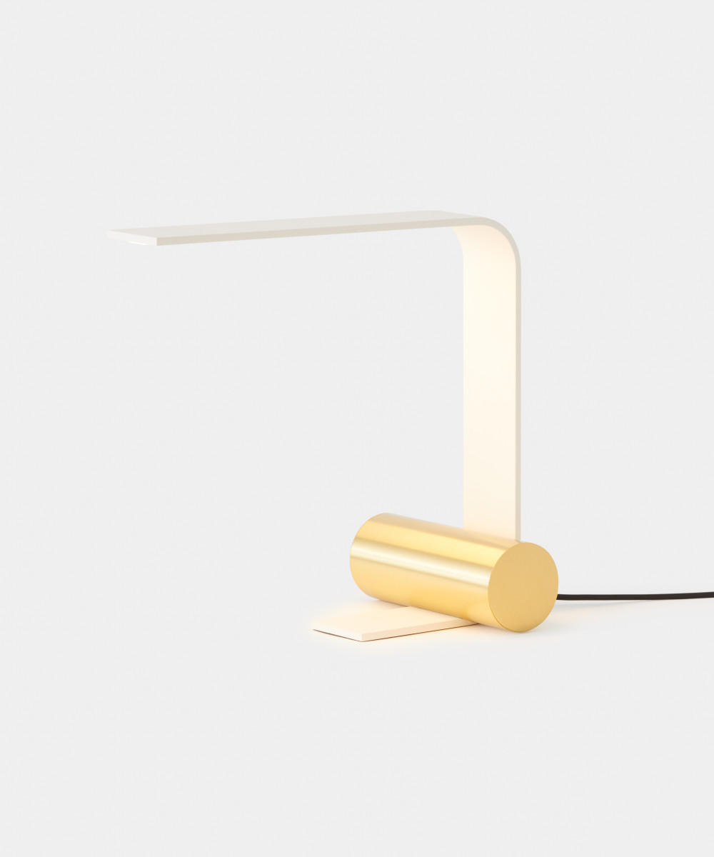 The Nastro collection of suspension, wall, floor and table lamps designed by Studiopepe sees an epoxy powder coated aluminum band structure accompanied by a cylindric weight that counterbalances its flexuosity, in a refined visual balance. The light source consists of a dimmable LED strip; the cylinders are available in epoxy powder coated metal, in wood, in brushed brass and in raw concrete.