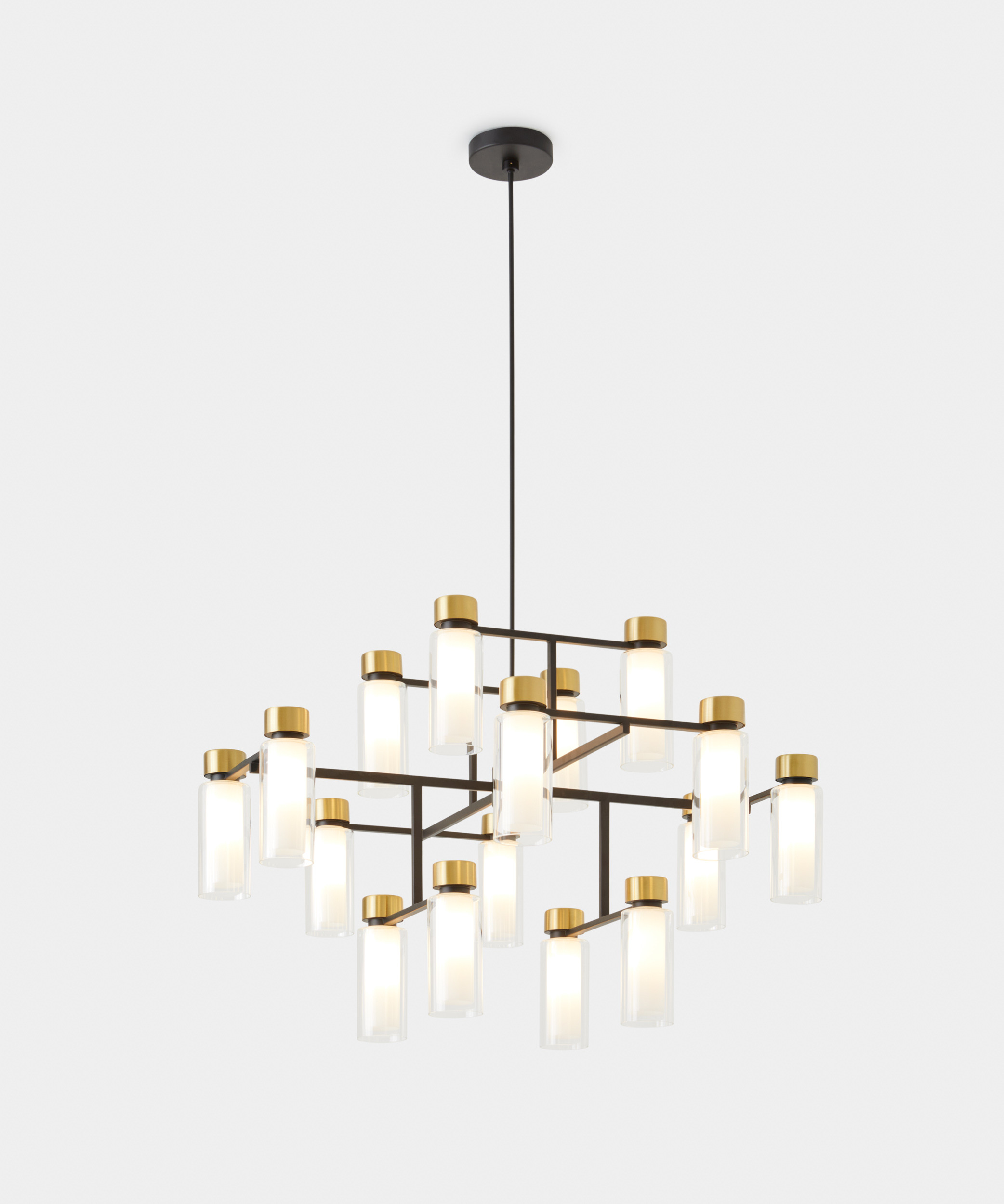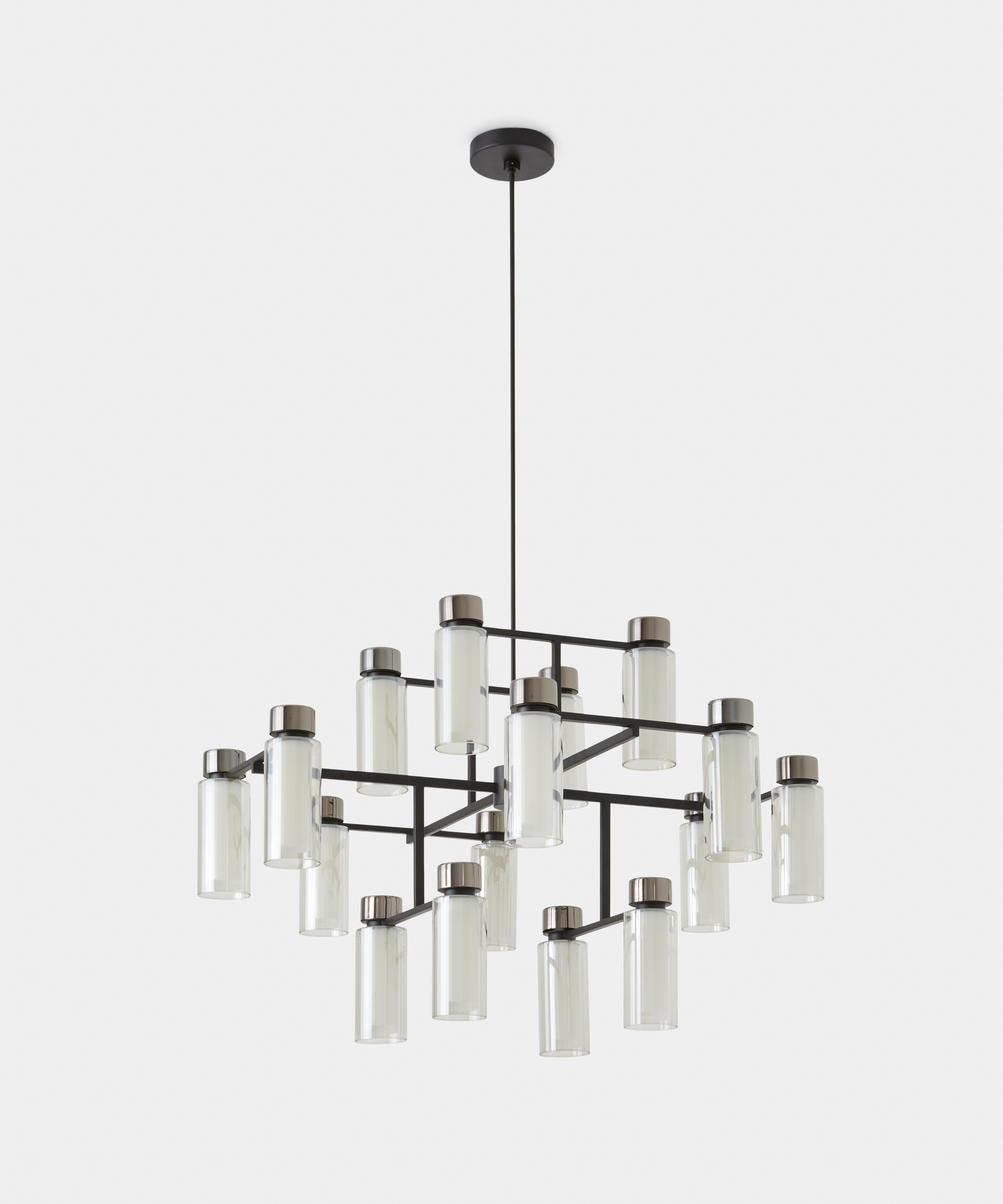 Family of lamps with a rational design enriched by precious metallic details and double-wall cylindrical diffusers that give a fascinating and harmonious light diffusion. The particular orthogonal structure and the well-balanced proportions give these lamps a strong avantgarde sign while maintaining a formal, familiar and refined appearance.