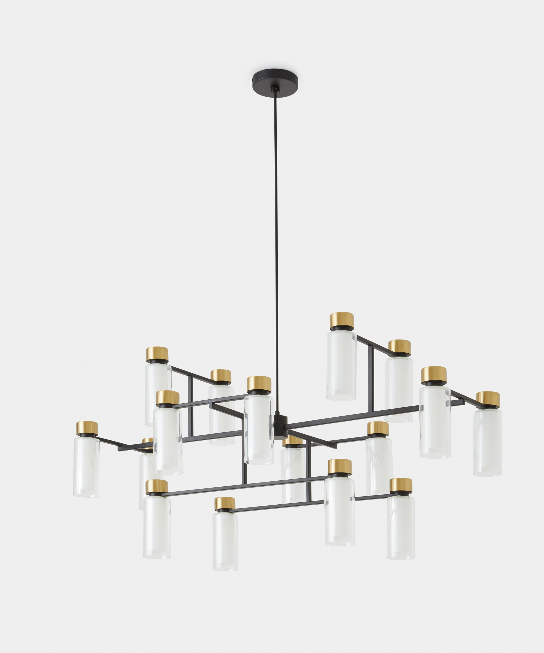 Family of lamps with a rational design enriched by precious metallic details and double-wall cylindrical diffusers that give a fascinating and harmonious light diffusion. The particular orthogonal structure and the well-balanced proportions give these lamps a strong avantgarde sign while maintaining a formal, familiar and refined appearance.