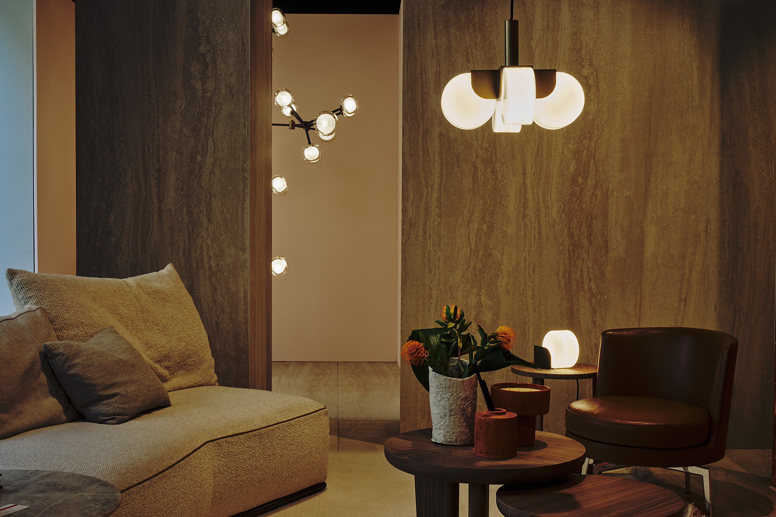 Inspired by water and its ability to shape fluid, lightweight forms, it becomes an object with an ethereal yet intense presence. Available in various versions — from pendants and wall lamps to table and ceiling models — Stilla adapts gracefully to different settings, casting a soft, enveloping light that enriches interiors with delicate elegance and a distinctive character.