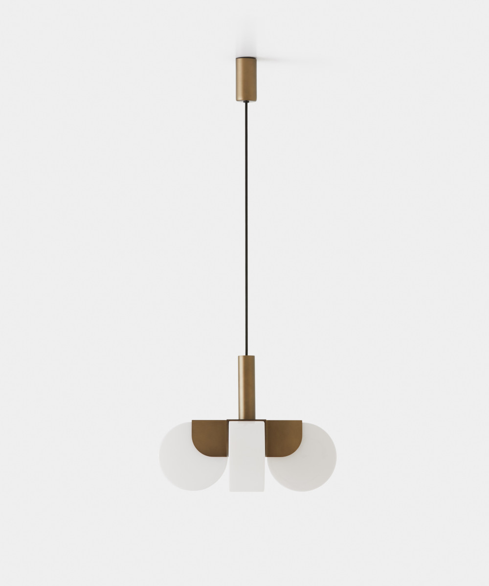Stilla is a collection that blends metal and glass in a balance of clean, essential lines. The luminous body opens downward to embrace a glass element that, like a drop of water, appears to glide effortlessly, creating a refined interplay of materials.