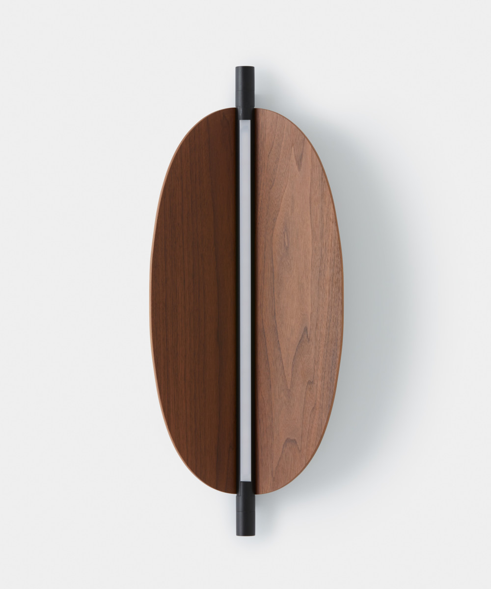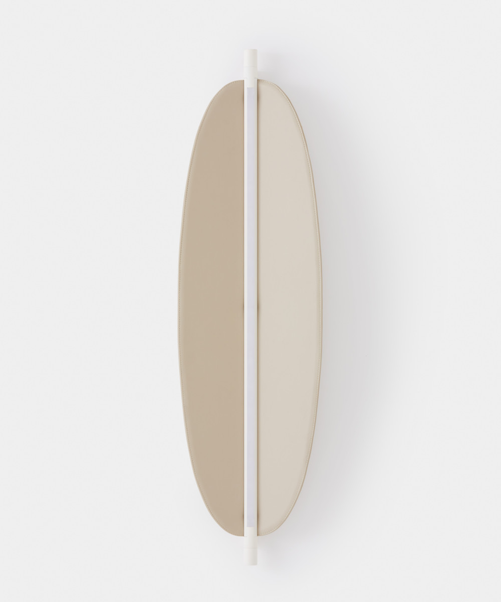 Designed by Federica Biasi, the Thula appliques and suspension lamps are based on a simple and architectural central element with an illuminating function to which an organic component in wood or quilted leather is added in a skillful game of addition and subtraction. Consists of a linear dimmable LED; in the simple wall version it can be oriented, thus giving direct or indirect light.